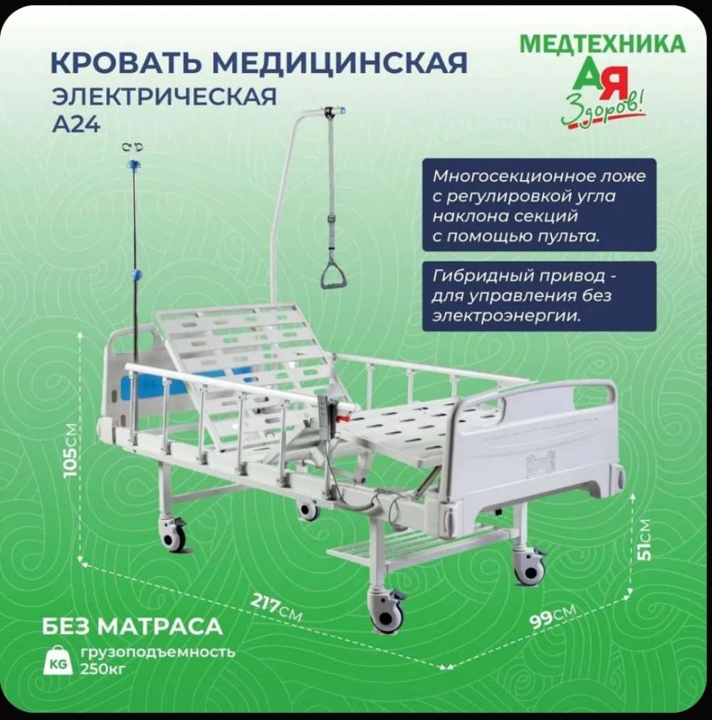 Кровать медицинская для лежачих больных. Производитель ЮкиГрупп. Модель А24. Привод электрический и ручной