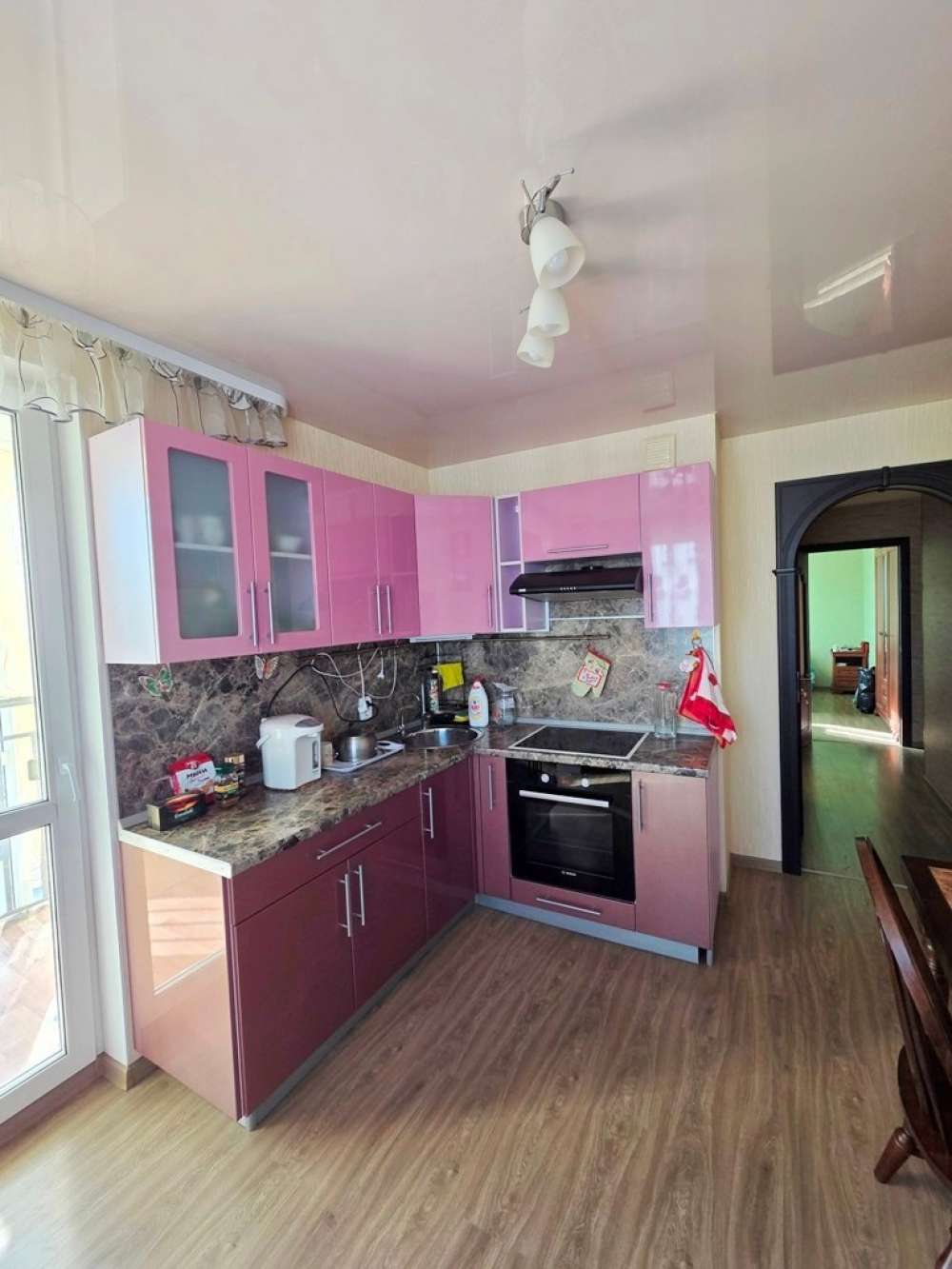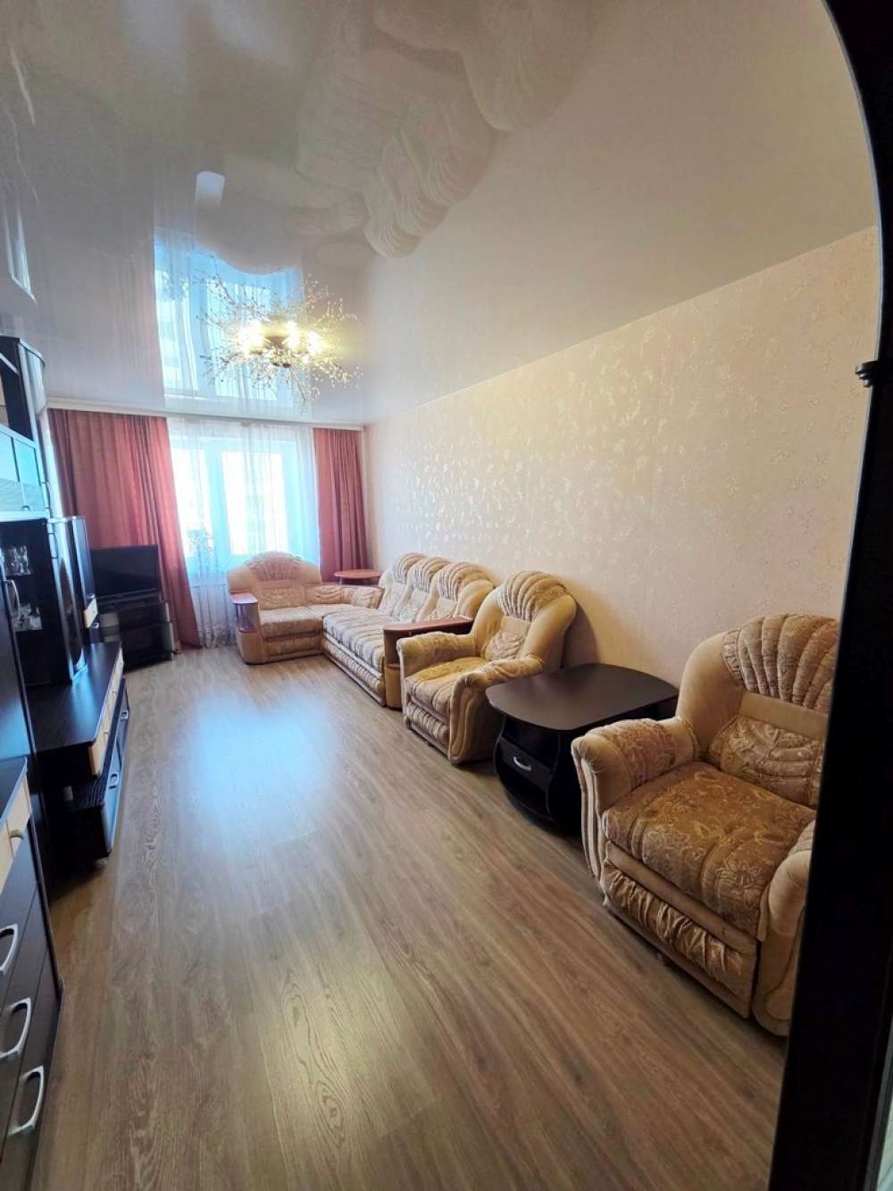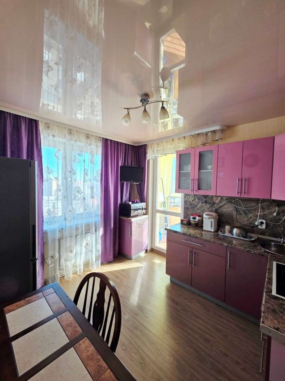 Просторная квартира с мебелью и техникой в хорошем состоянии. Территория огорожена, есть детская площадка. Рядом школы, садики, магазины, транспорт, паркинг, парк, водоем.