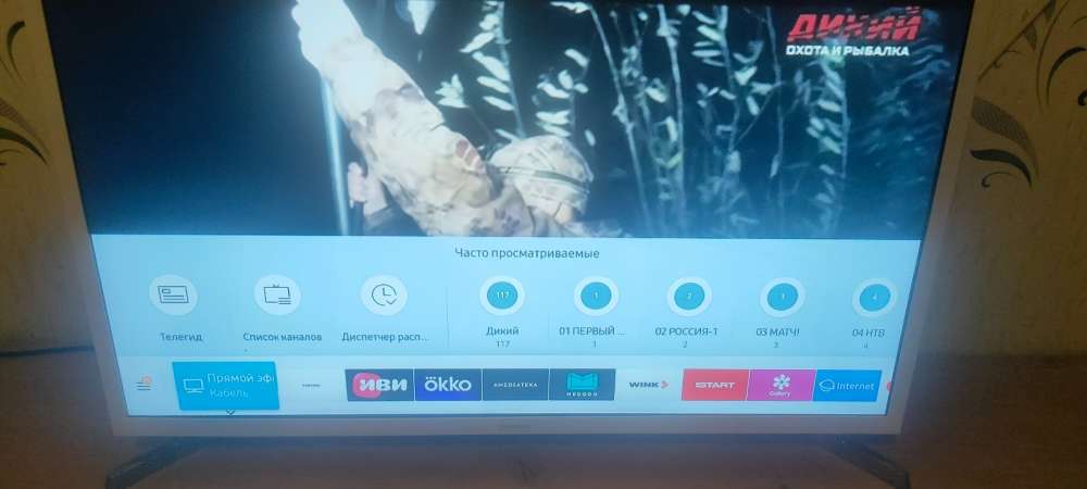 Телевизор SAMSUNG, диагональ 82см. Смарт, Wi-FI. RU TUBE, VK VIDEO приложения установлены , работают отлично. Грузится быстро, показывает насыщенно красочно. Модель UE32N4510, белого цвета.