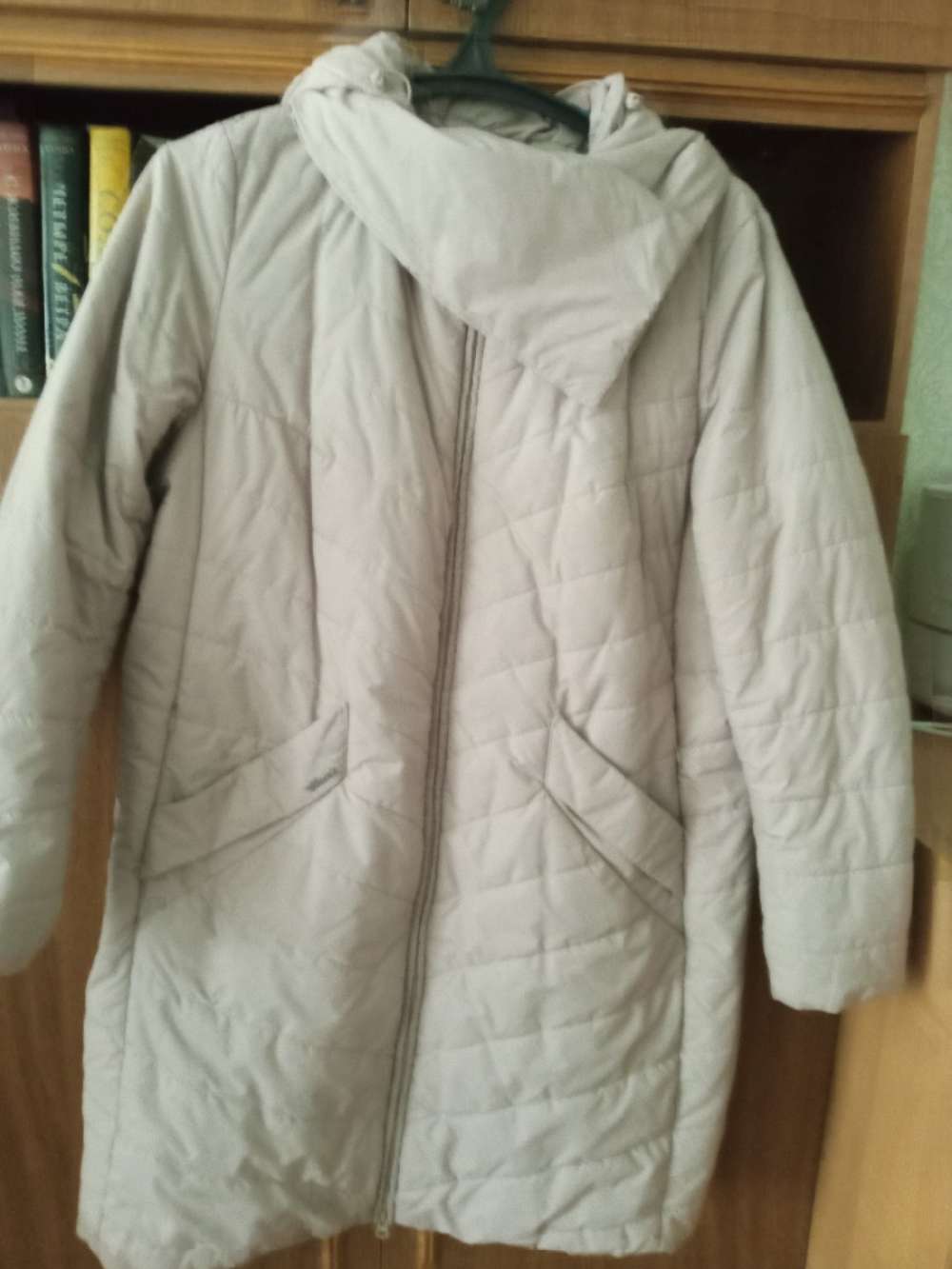 куртка женская демисезонная, цвет бежевый, с капюшоном, на синтепоне, размер 52, подойдет даже для не очень холодной зимы