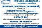 Оператор очистных сооружений, электромонтер по ремонту и обслуживанию электрооборудования, слесарь АВР, химик-аналитик, г. Березовский