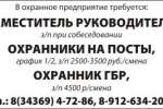 требуется заместитель руководителя, охранники на посты, охранники ГБР, г.Березовский