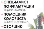 Кладовщик, специалист по фильтрации, помощник колориста, сборщик-оператор ПК, г. Березовский
