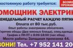 Помощник электрика, г. Березовский