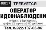 Оператор видеонаблюдения , г. Березовский