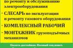 Требуется электромонтер, слесарь, комплексный рабочий, монтажник