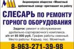 Слесарь по ремонту горного оборудования, г. Березовксий
