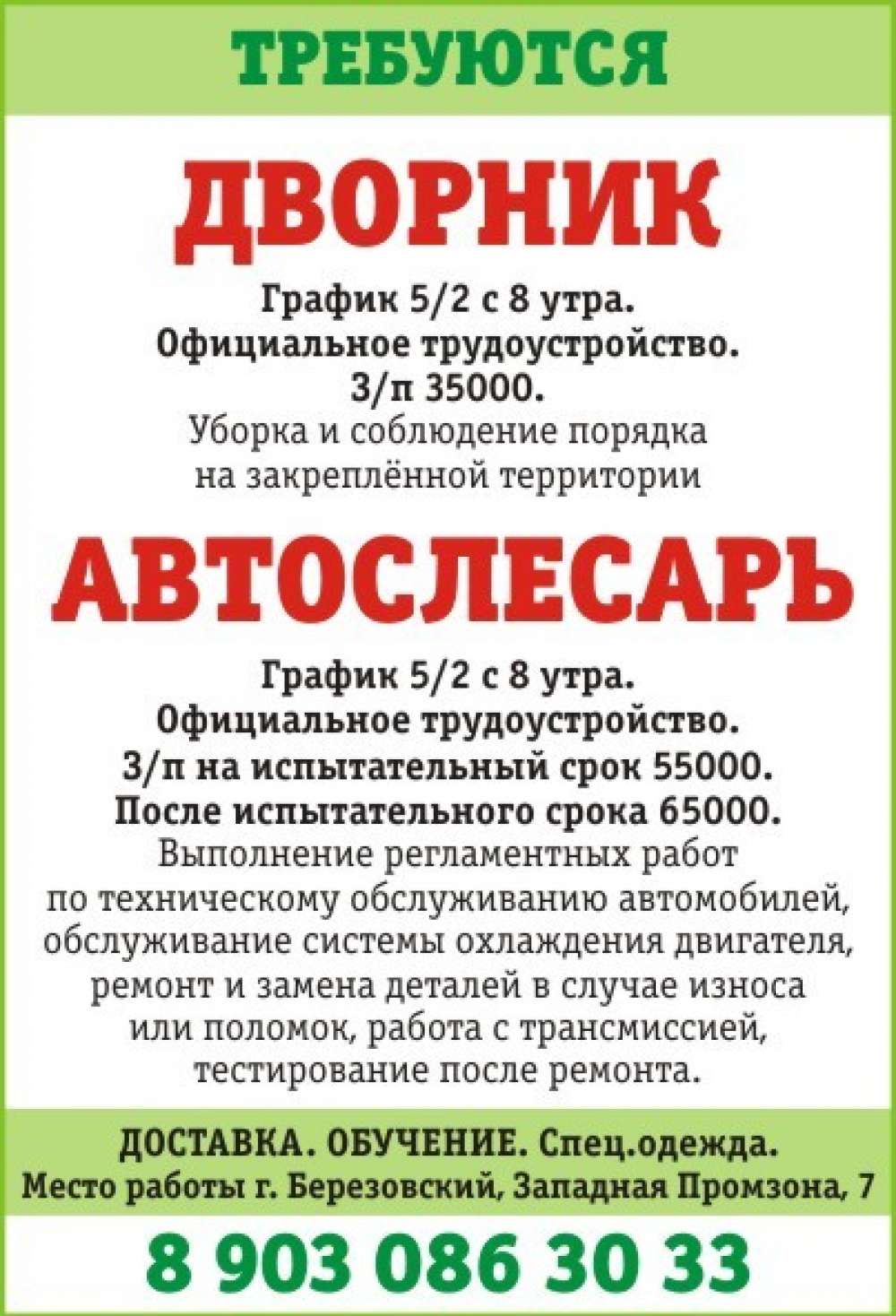 Дворник, автослесарь, г. Березовский