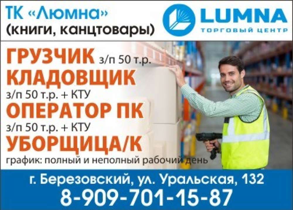грузчик, кладовщик, оператор ПК, уборщик/ца, г.Березовский