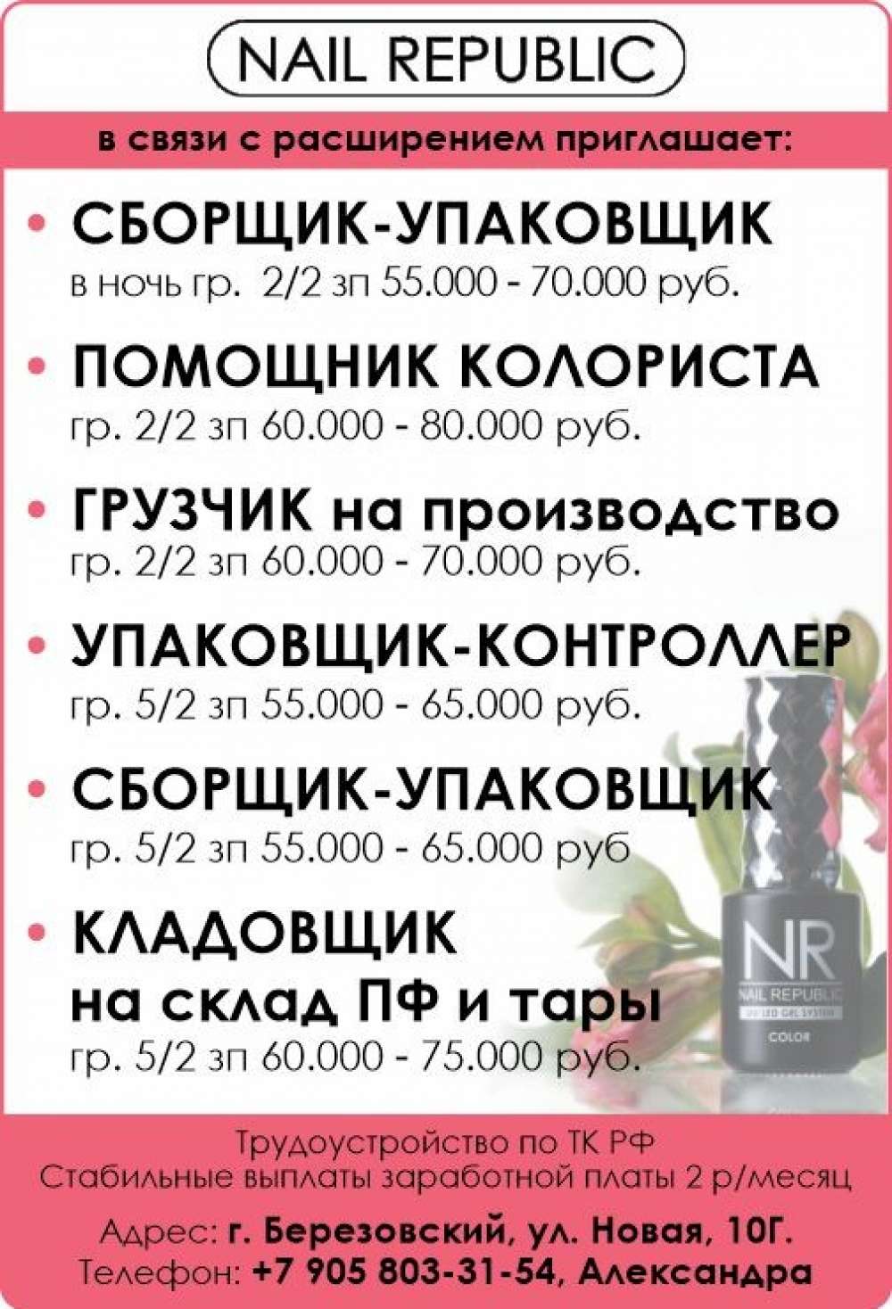 Сборщик-упаковщик, помощник колориста, грузчик на производство, упаковщик-контролер, сборщик-упаковщик, кладовщик на склад ПФ и тары, г. Березовский
