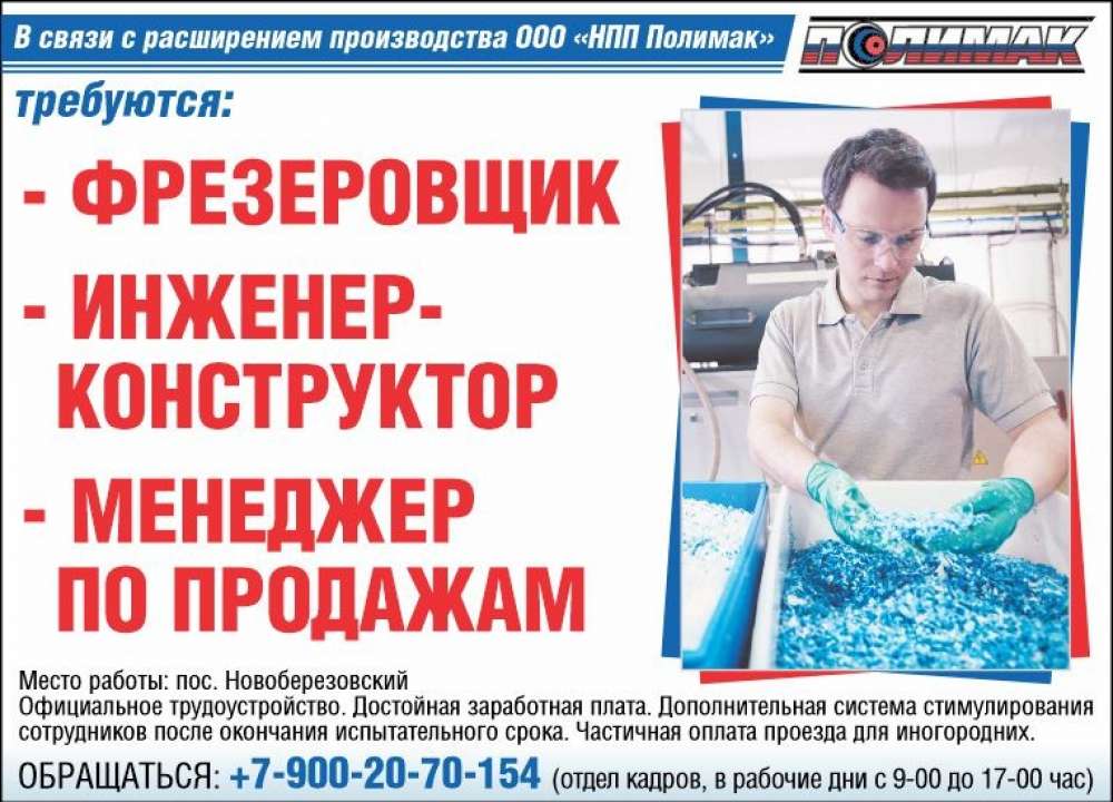 Фрезеровщик, инженер-конструктор, менеджер по продажам, г. Березовский