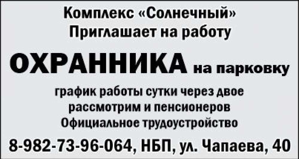Охранник на парковку, г. Березовский