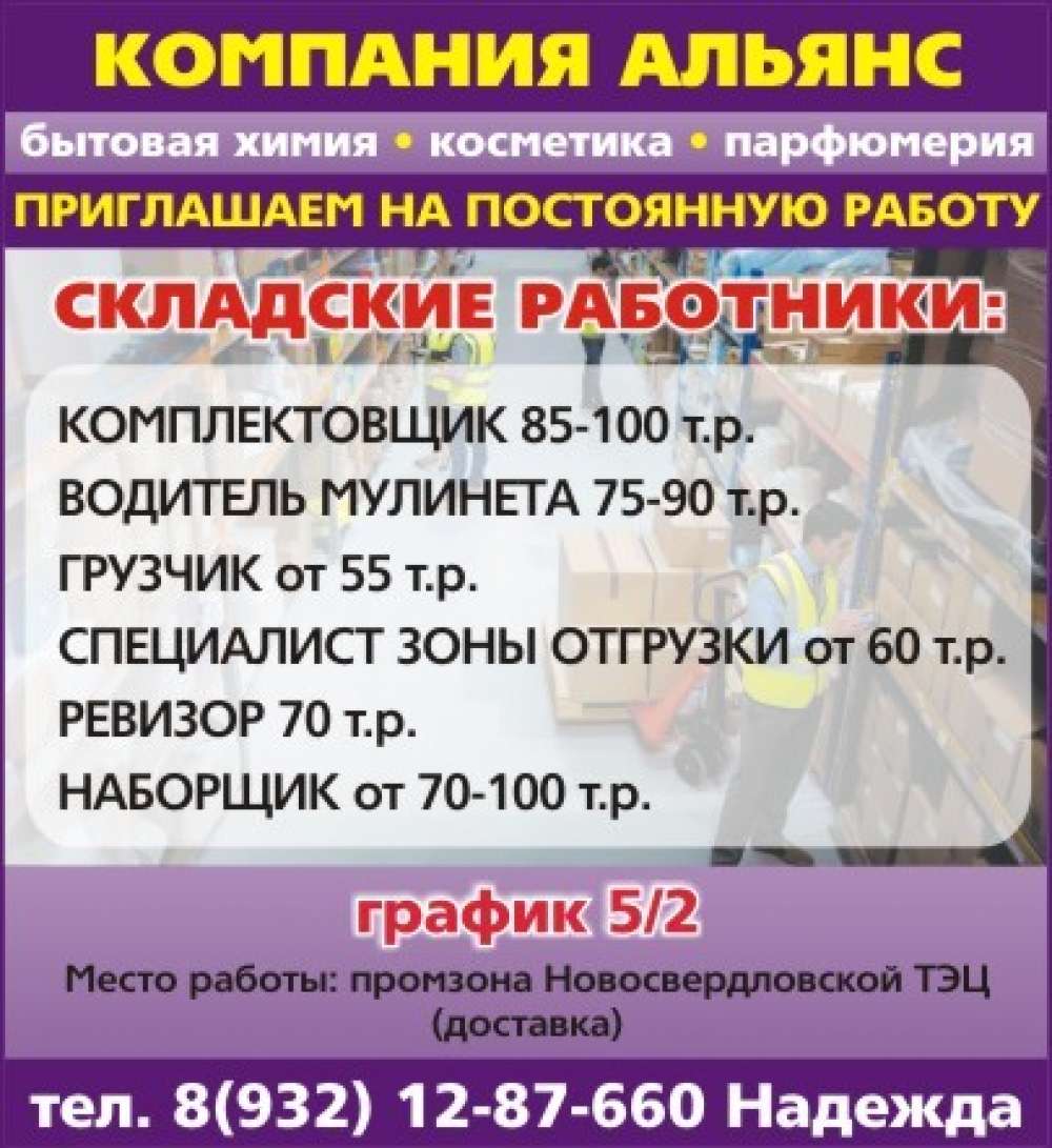 Комплектовщик, водитель мулинета, грузчик, специалист зоны отгрузки, ревизор, наборщик, г. Березовский