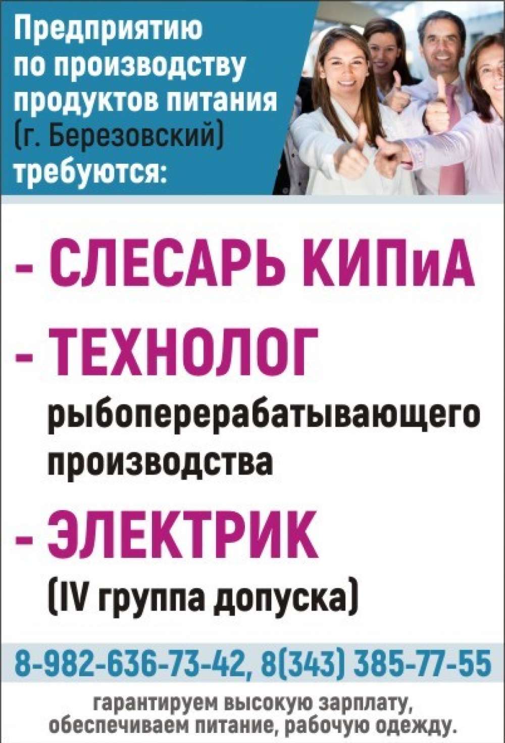 Слесарь КИПиА рыбоперерабатывающего производства, электрик 4 гр. допуска, г. Березовский