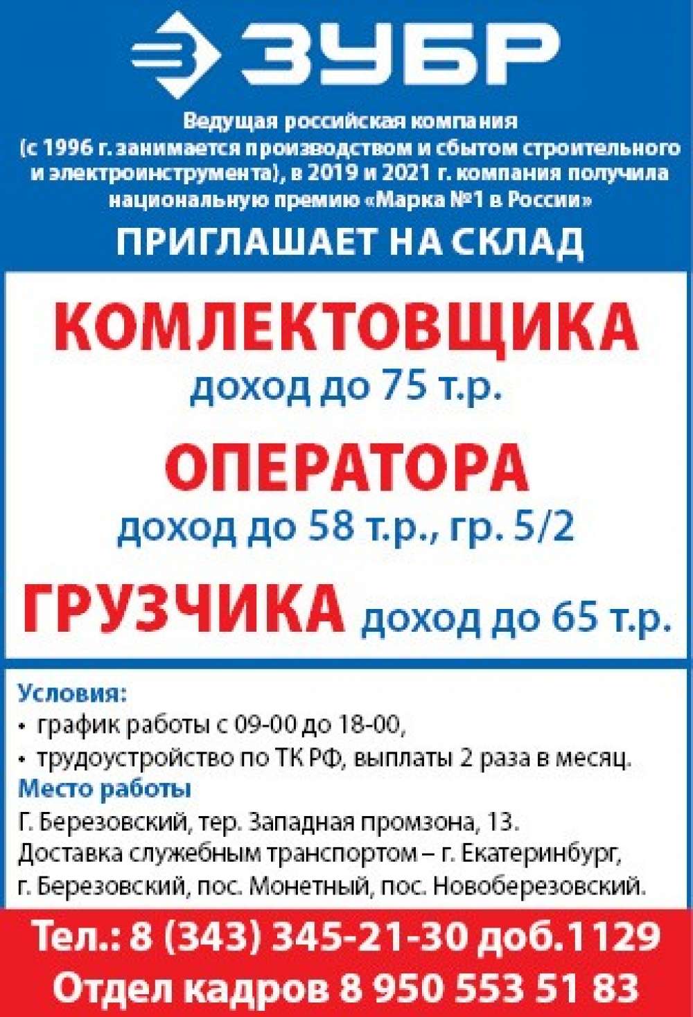 Комплектовщик, оператор, грузчик, г. Березовский