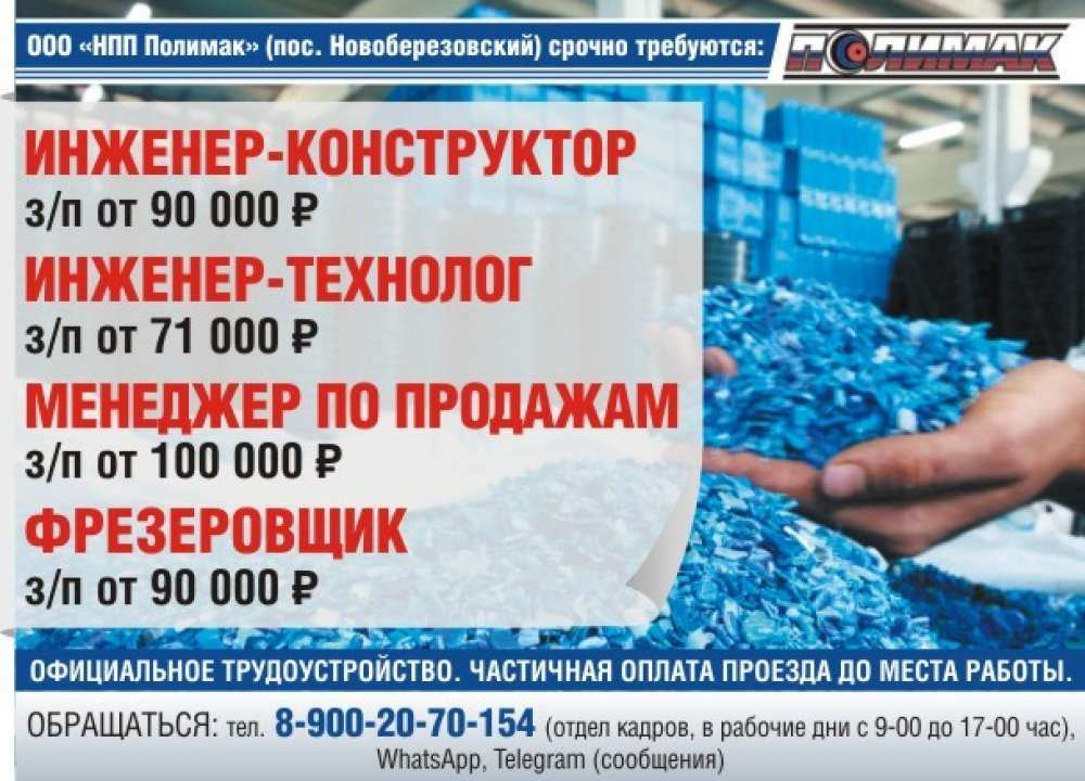 Инженер-конструктор, инженер-технолог, менеджер по продажам, фрезеровщик, г. Березовский