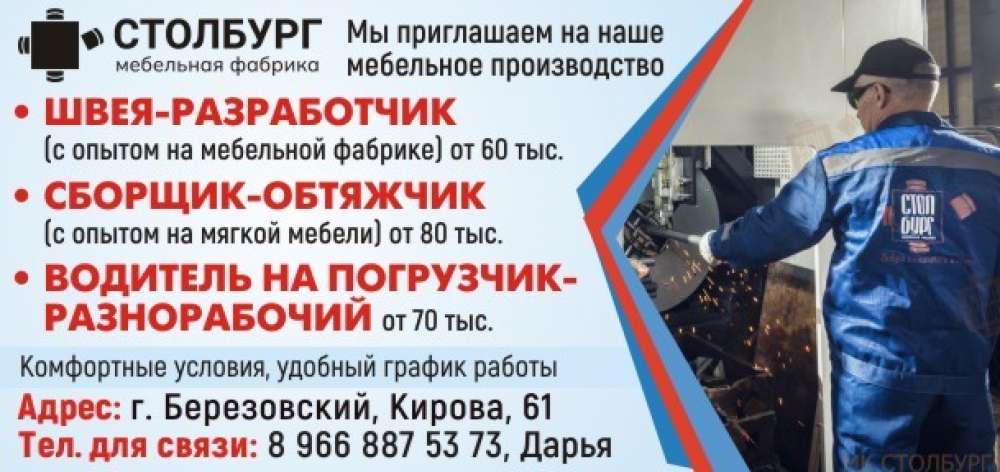 Швея-разработчик, сборщик-обтяжчик, водитель на погрузчик-разнорабочий, г. Березовский