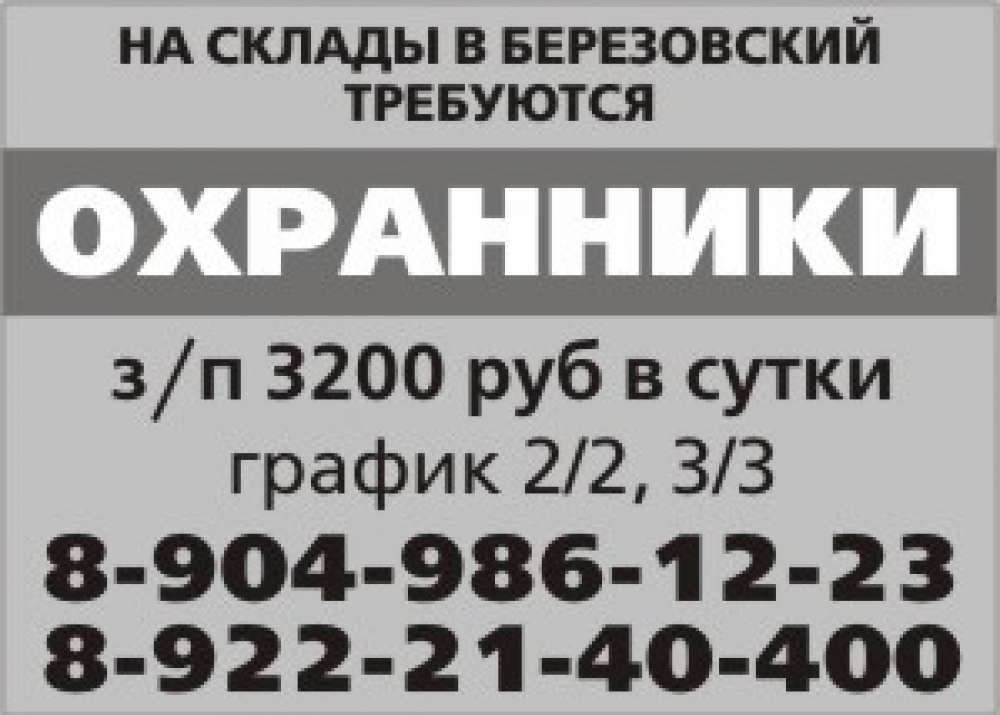 Требуются охранники, г.Березовский