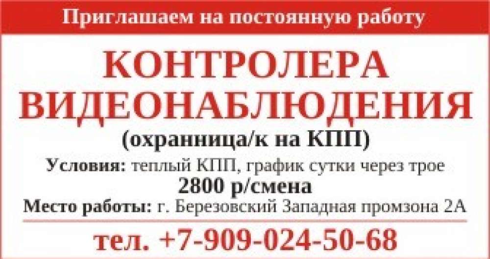 Контролер видеонаблюдения, г. Березовский