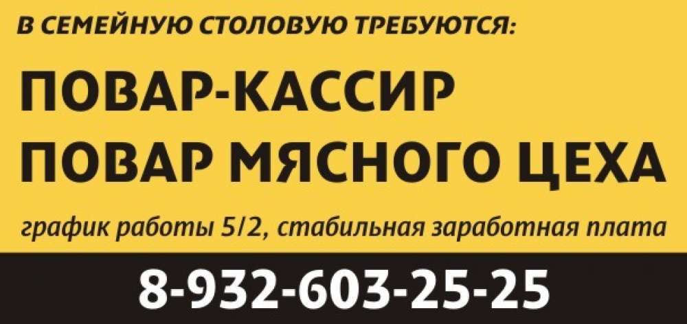 Требуется повар-кассир, повар мясного цеха, г.Березовский