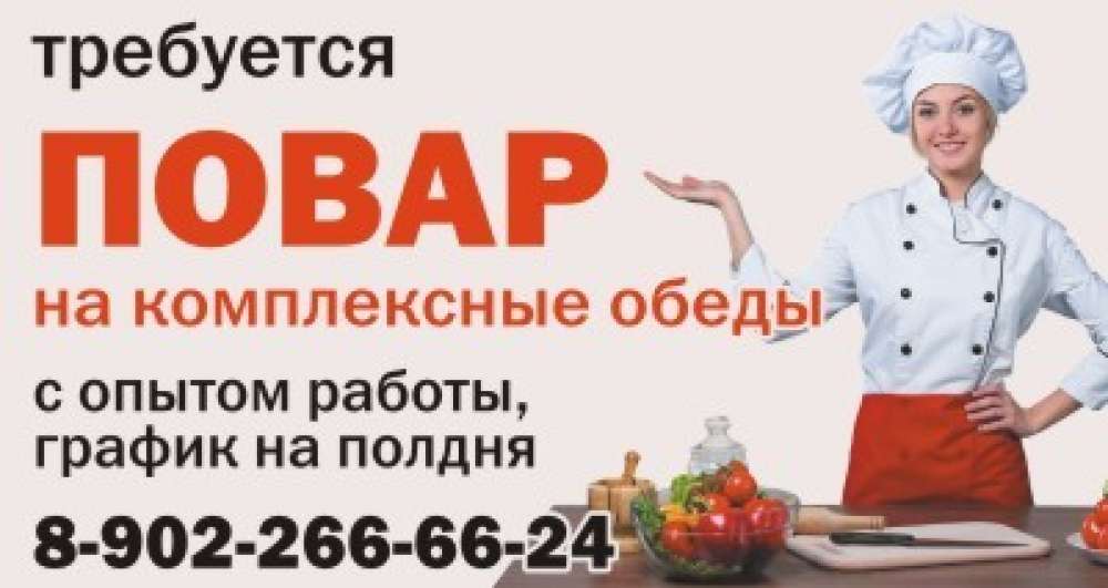 ТРЕБУЕТСЯ ПОВАР НА КОМПЛЕКСНЫЕ ОБЕДЫ, г.Березовский