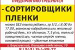 Водитель-экспедитор (кат. С,Е), грузчик-комплектовщик, контролер КРО, дворник, уборщица служ. помещений, оператор 1С, спечиалист по пожарной профилактике, охранник в магазин, ревизор, продавец-консультант, продавец-кассир, г. Березовский