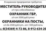 Требуется заместитель руководителя, охранник ГБР, охранники на посты, г.Березовский
