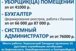 Уборщик помещений, бухгалтер, системный администратор, г. Березовский