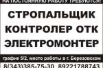 Стропальщик, контролер ОТК, электромонтер, г. Березовский