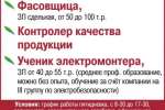 Рабочий на навеску/помол, фасовщица, контролер качество продукции, ученик электромонтера, г. Березовский