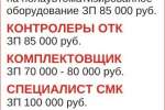 Операторы-сборщики, контролеры ОТК, комплектовщик, специалист СМК, г. Березовский